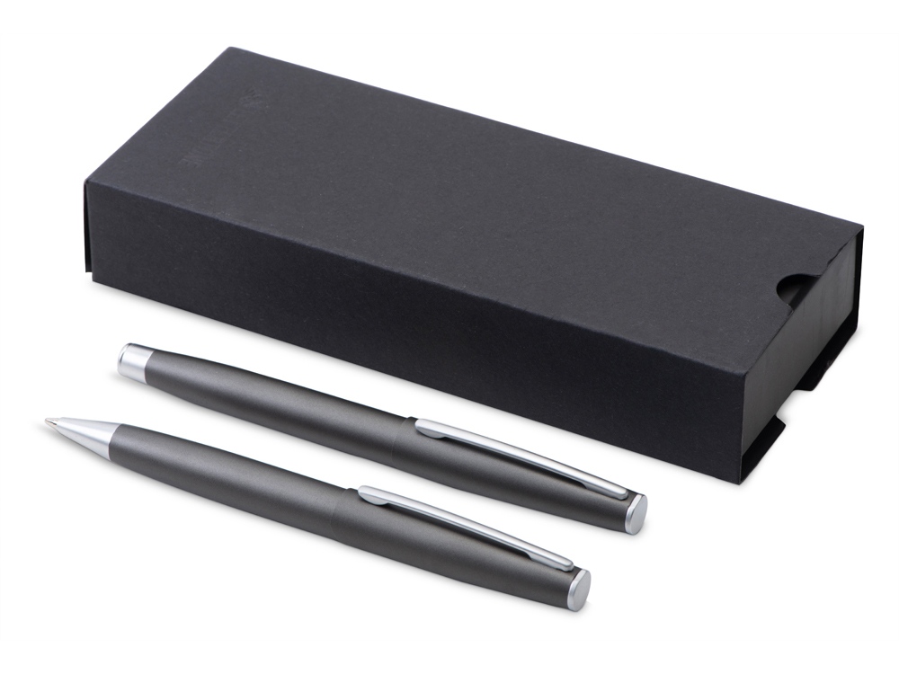 Статусный и функциональный набор состоит из двух металлических ручек - шариковой и роллера. Широкая форма помогает ручкам комфортно ложиться в руку и увеличивает площадь для нанесения логотипа.