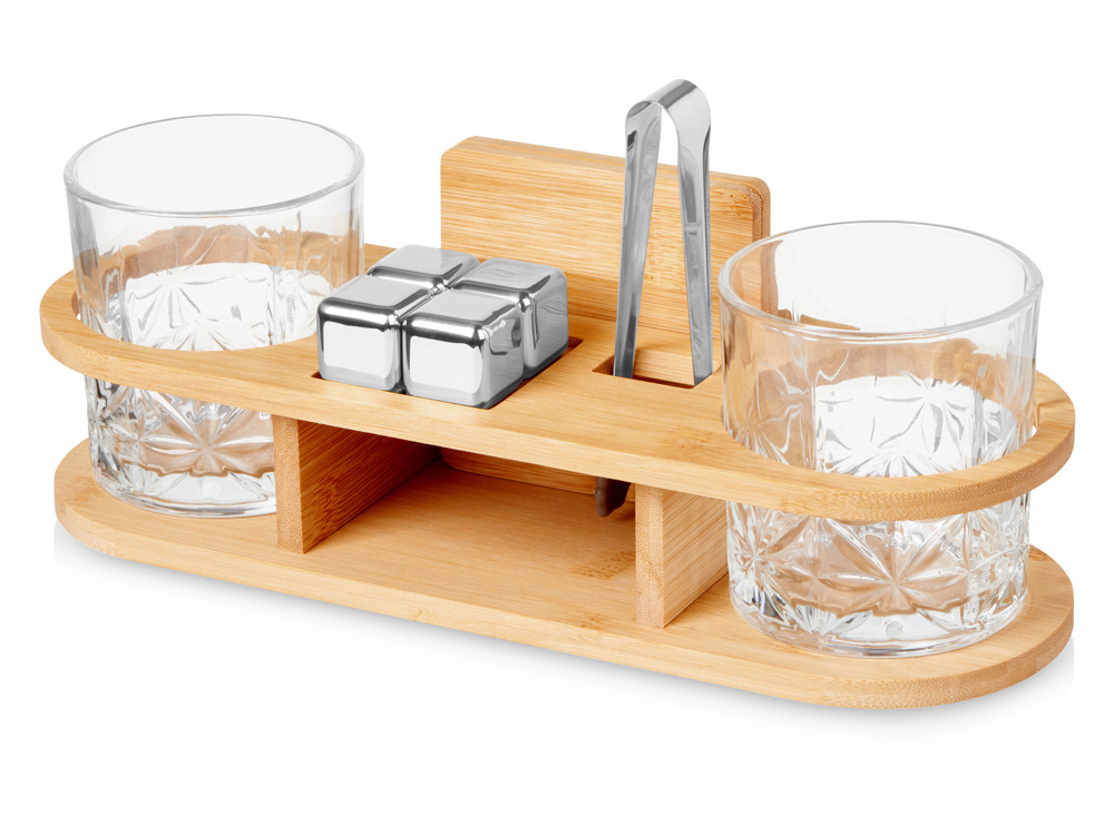 бокал для виски- 2 шт, щипцы, стальные камни- 4 шт, бамбуковый костер- 2шт