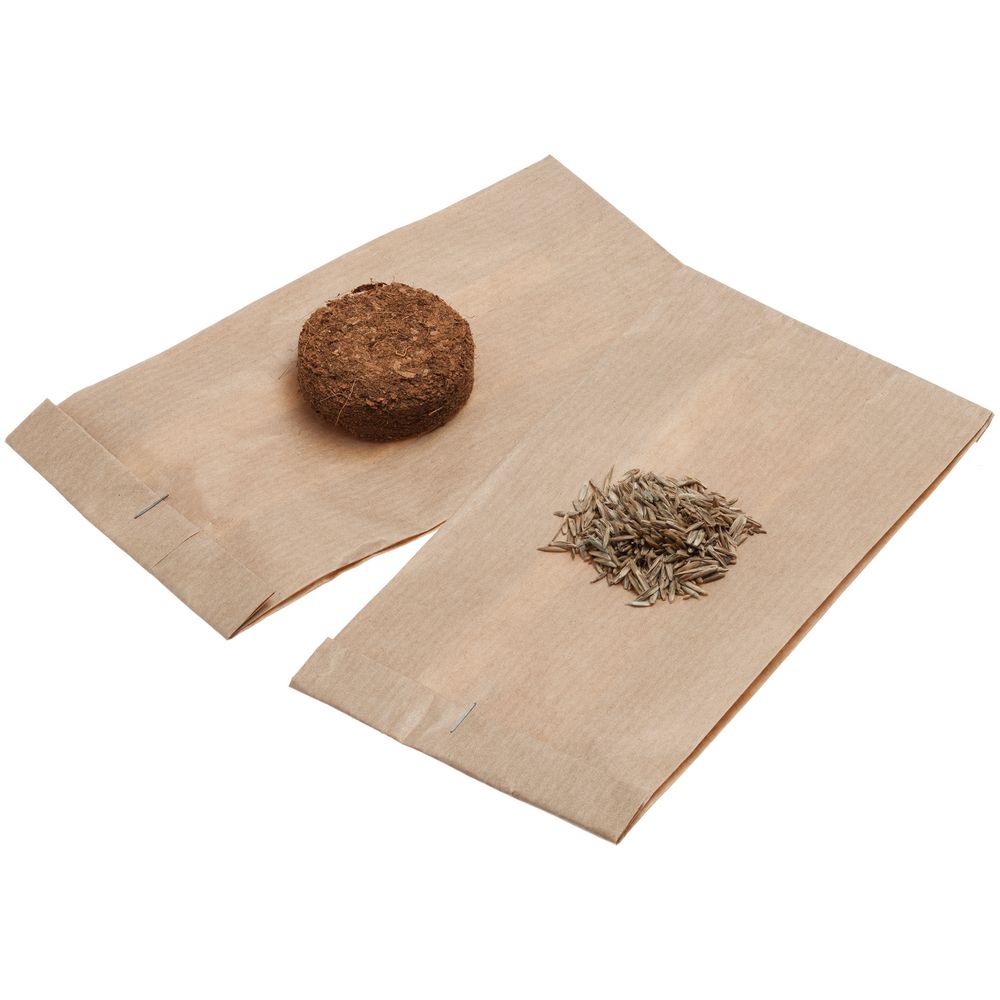 В комплекте фигурка, грунт, семена теневыносливой газонной травы и инструкция для посадки.