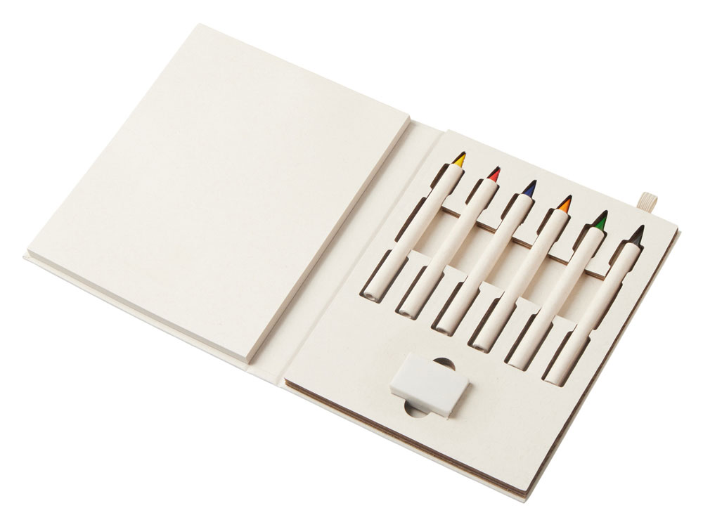 Набор для рисования из переработанных тетра-паков. Внутри 6 цветных карандашей, ластик и пустые листы для рисования. Трафаретная печать по твердым материалам (1 цвет (цветные изделия)) на данный товар осуществляется бесплатно. Оплачивается только настройка оборудования в размере 4500 рублей на весь тираж.
