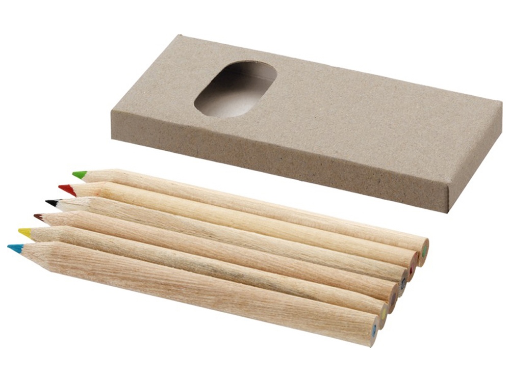 Набор включает в себя 6 цветных карандашей из натурального дерева. На картонную коробку и карандаши можно нанести логотип организации. Тампопечать (1 цвет (цветные изделия)) на данный товар осуществляется бесплатно. Оплачивается только настройка оборудования в размере 4500 рублей на весь тираж.