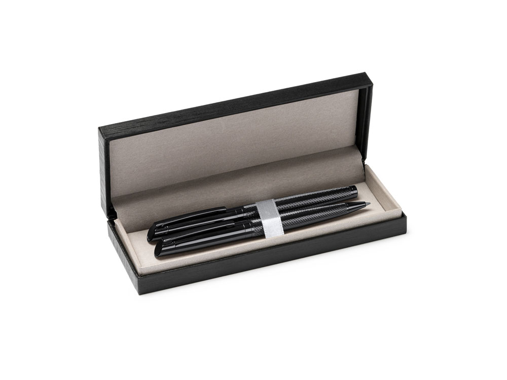 Элегантный набор, состоящий из ручки роллера и механического карандаша. Изготовлен из металла с затемненным рисунком. Поставляется в мягком футляре из кожзаменителя с внутренней подкладкой. Гравировка (оптоволоконный лазер) (Без чернения) на данный товар осуществляется бесплатно. Оплачивается только настройка оборудования в размере 2700 рублей на весь тираж.