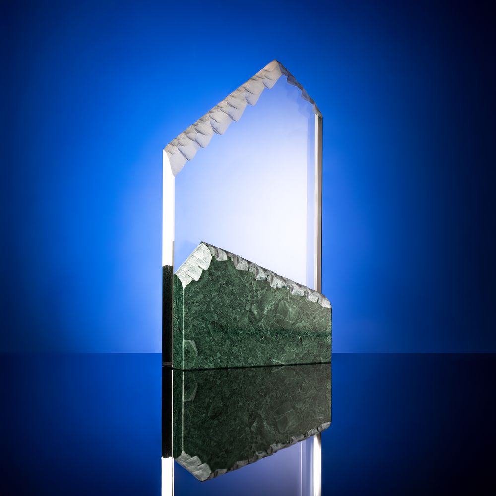 Стела Clifftop символизирует сложный путь к успеху, вдохновляя на преодоление трудностей и достижение новых высот. Она просто идеальна для признания выдающихся достижений, требующих особых усилий и стойкости характера. Элегантный камень серпентин добавляет награде внушительности, а шероховатость поверхностей делает ее более живой и оригинальной.