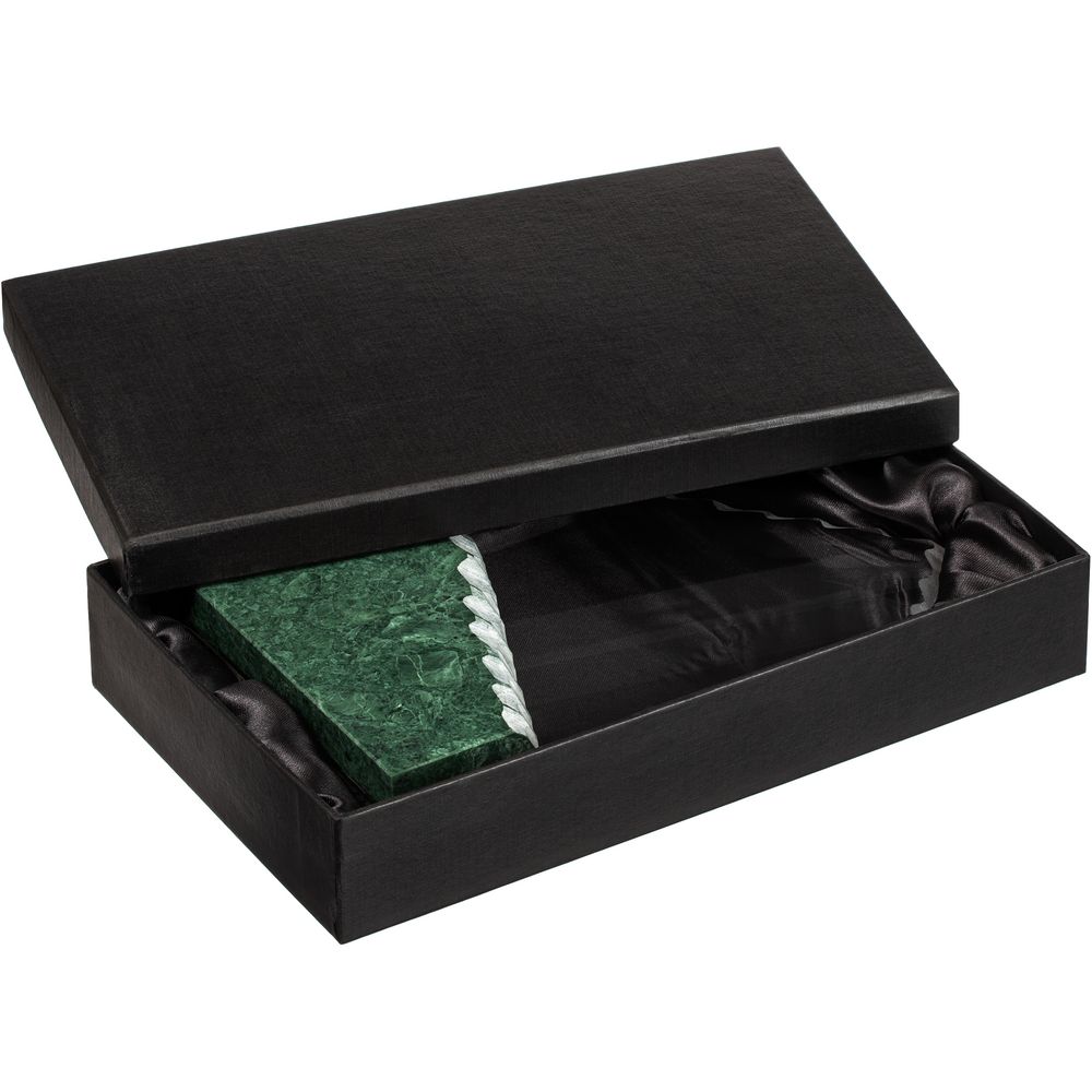 Помимо красивейшего змеевика, награда изготовлена из стекла К9, в основе которого лежит оптическое боросиликатное стекло. Эту марку стекла отличает низкий процент посторонних включений, высокий показатель преломления и высокая прозрачность — идеальные качества для изготовления наград премиального уровня.