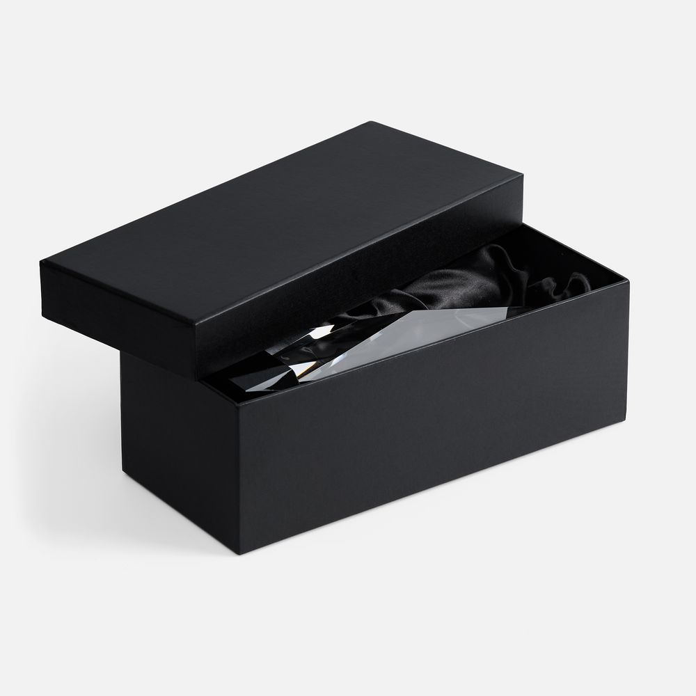 Награда изготовлена из стекла К9, в основе которого лежит оптическое боросиликатное стекло. Эту марку стекла отличает низкий процент посторонних включений, высокий показатель преломления и высокая прозрачность — идеальные качества для изготовления наград премиального уровня.