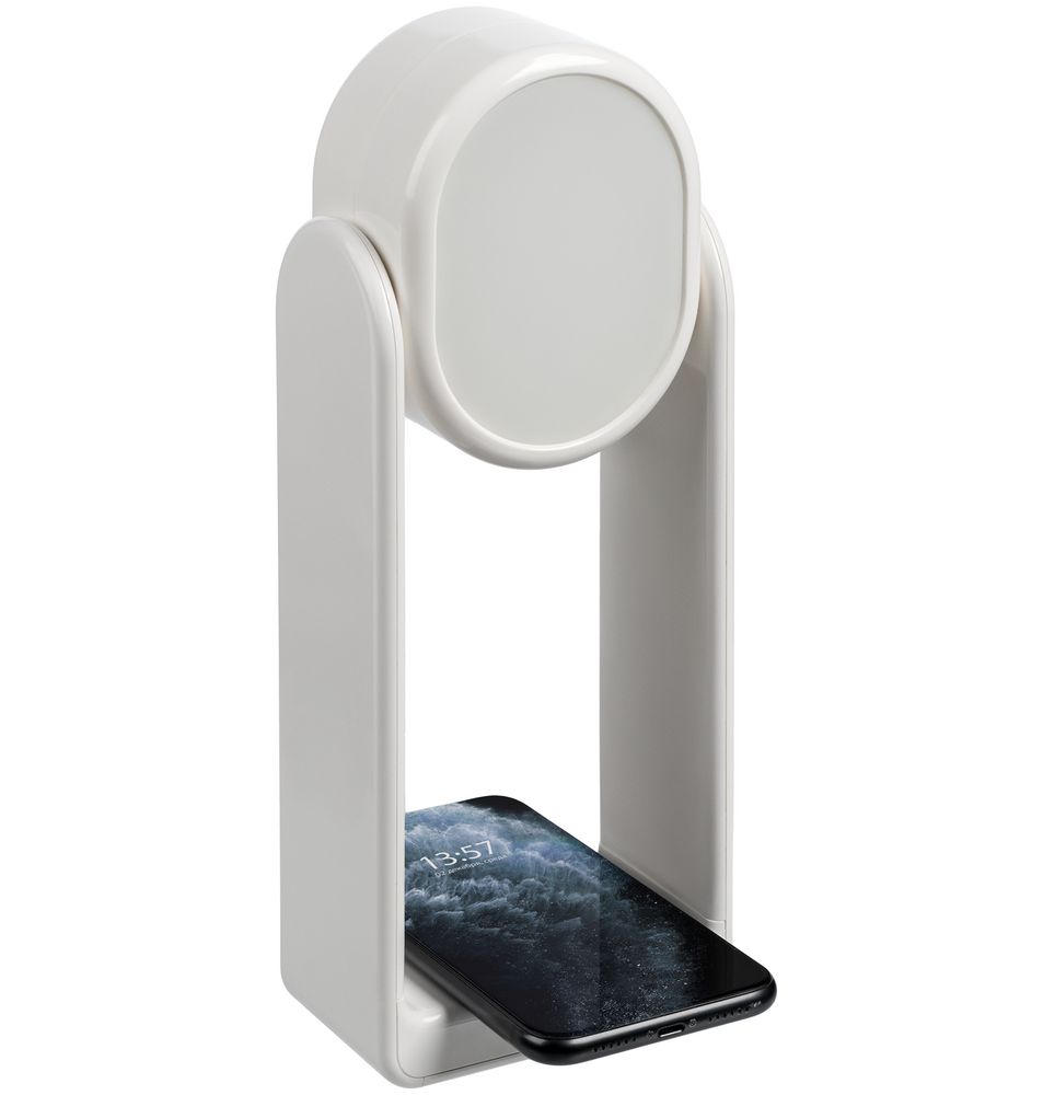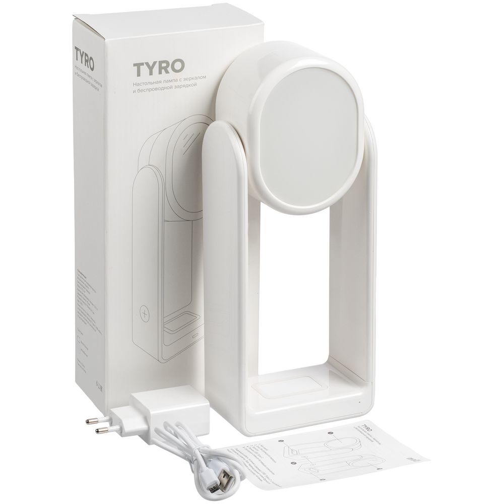 Настольная лампа с зеркалом и беспроводной зарядкой Tyro, белая