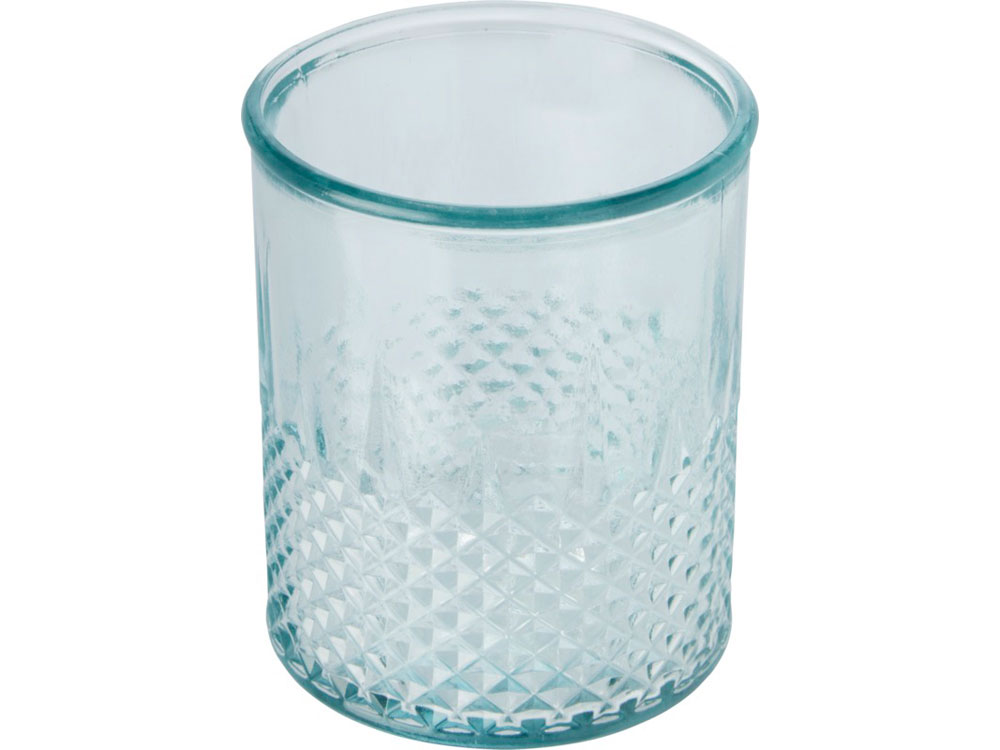 Подставка для чайной свечи из переработанного стекла с алмазным рельефом. Для создания этой подставки была использована 1 стеклянная переработанная бутылка. Переработанное стекло не отличается ничем по качеству от обычного, но при этом является более экологичным, ведь на изготовление этого материала тратится меньше энергии, сырья и примесей. Чайная свеча не входит в комплект.