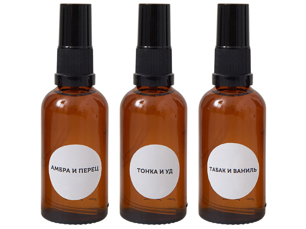 Эти ароматы идеально подходят для ежедневного использования и подарят любому пространству неповторимый шарм. Стеклянные флаконы добавляют набору элегантности и долговечности, а спрей позволяет равномерно распределять аромат, создавая идеальную атмосферу в любом помещении. Емкость каждого спрея - 50 мл. Цифровая печать (наклейка на белой пленке) на данный товар осуществляется бесплатно. Оплачивается только настройка оборудования в размере 1100 рублей на весь тираж.