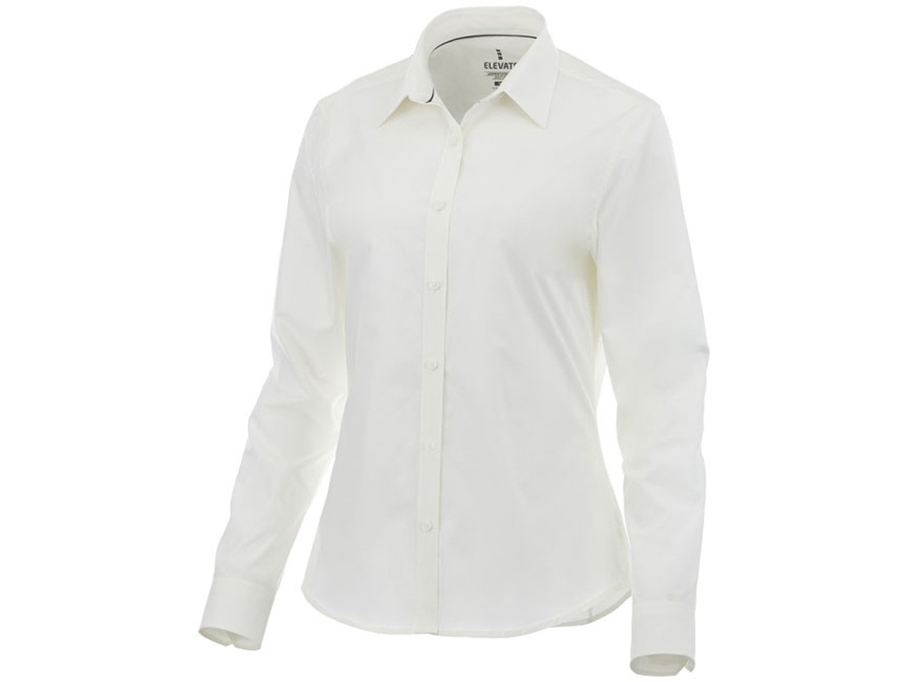 Женская рубашка с длинными рукавами Hamell. манжет на одной пуговице. Атласная окантовка внутренней части горловины. Швы моделирующие фигуру и приталенный крой. Гравированные пуговицы в цвет изделия. Комфортный ярлык-трансфер на изделии. Поплин из 96% хлопка и 4% эластана. 118 г/м². Трафаретная печать (1 цвет (белые изделия)) на данный товар осуществляется бесплатно. Оплачивается только настройка оборудования в размере 7300 рублей на весь тираж.
