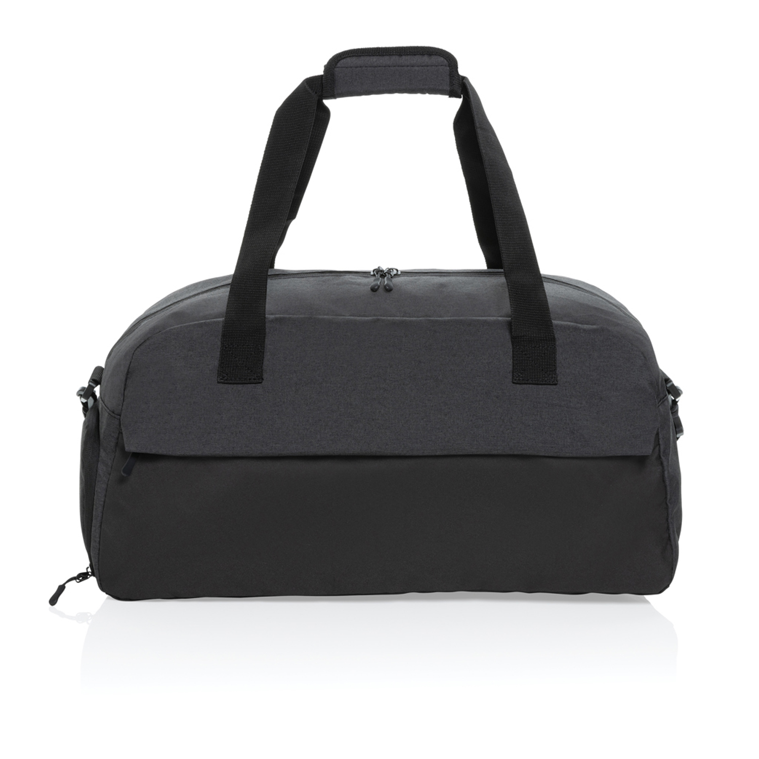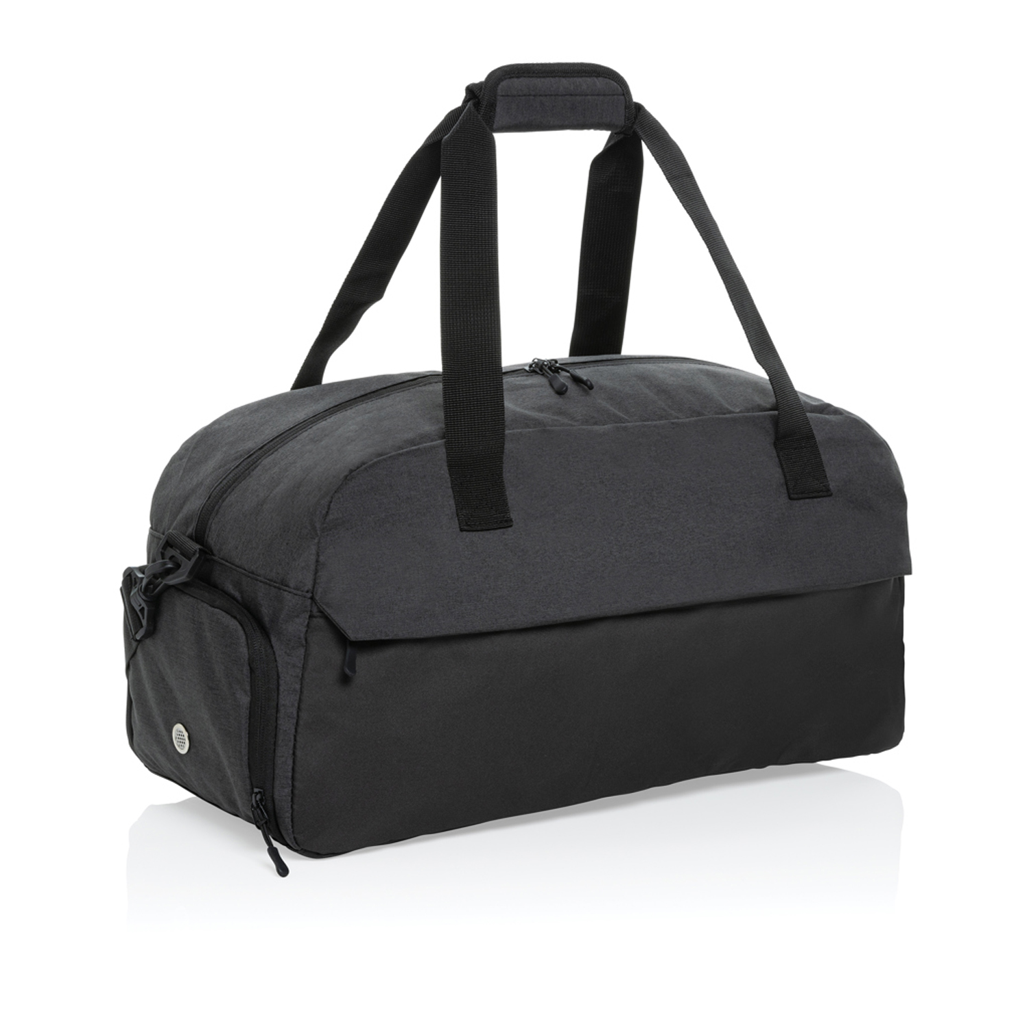 Дорожная сумка Kazu станет незаменимым спутником для спортсменов и тех, кто часто ездит в командировки и поездки. Помимо внутреннего отделения, сумка оснащена двумя карманами. Во внутреннее отделение поместятся нужные в дороге или на тренировке вещи, а в боковой — обувь. В наружный карман можно положить необходимые мелочи. Черные вставки, ручки и плечевой ремень играют роль контрастного акцента. Дорожная сумка изготовлена из переработанных пластиковых бутылок, поэтому она станет хорошим подарком для тех, кто заботится об экологии. Содержание вторичных материалов: 100%. Сертифицировано AWARE™. Наличие индикаторных частиц AWARE™ подтверждает, что мы действительно используем переработанные материалы. 2% с продажи каждой вещи, отмеченной сертификатом AWARE™, мы перечисляем в поддержку всемирной организации Water.org.