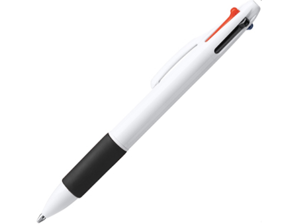 Шариковая ручка с чернилами 4-х цветов. Корпус из АБС-пластика с мягким цветным грипом. Чернила синего, черного, красного и зеленого цветов.