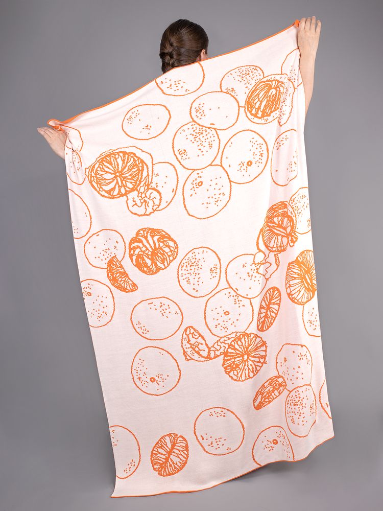 Ярких летних красок в зимние вечера добавит яркий плед Citrion! Его дизайн посвящен легкой предпраздничной суете: одни мандарины разрезаны, другие — очищены от кожуры, а некоторые все еще ждут своего часа. Такой «цикл жизни» простой мандаринки напоминает о маленьких новогодних радостях и мимолетности праздников. А если сил есть мандарины больше нет, можно ими просто укрыться!