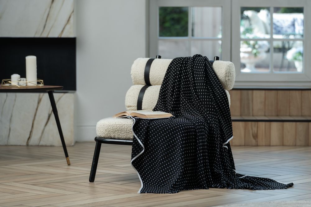 Плед из мягкого акрила Fringy особенный и неповторимый. Он выигрышно выделяется необычным узором — контрастными с основным полотном стежками, дополненными элегантной и аккуратной бахромой. Словно соединив в себе искусство вязания с шитьем, плед гармонично впишется в дизайн современной гостиной или спальни.