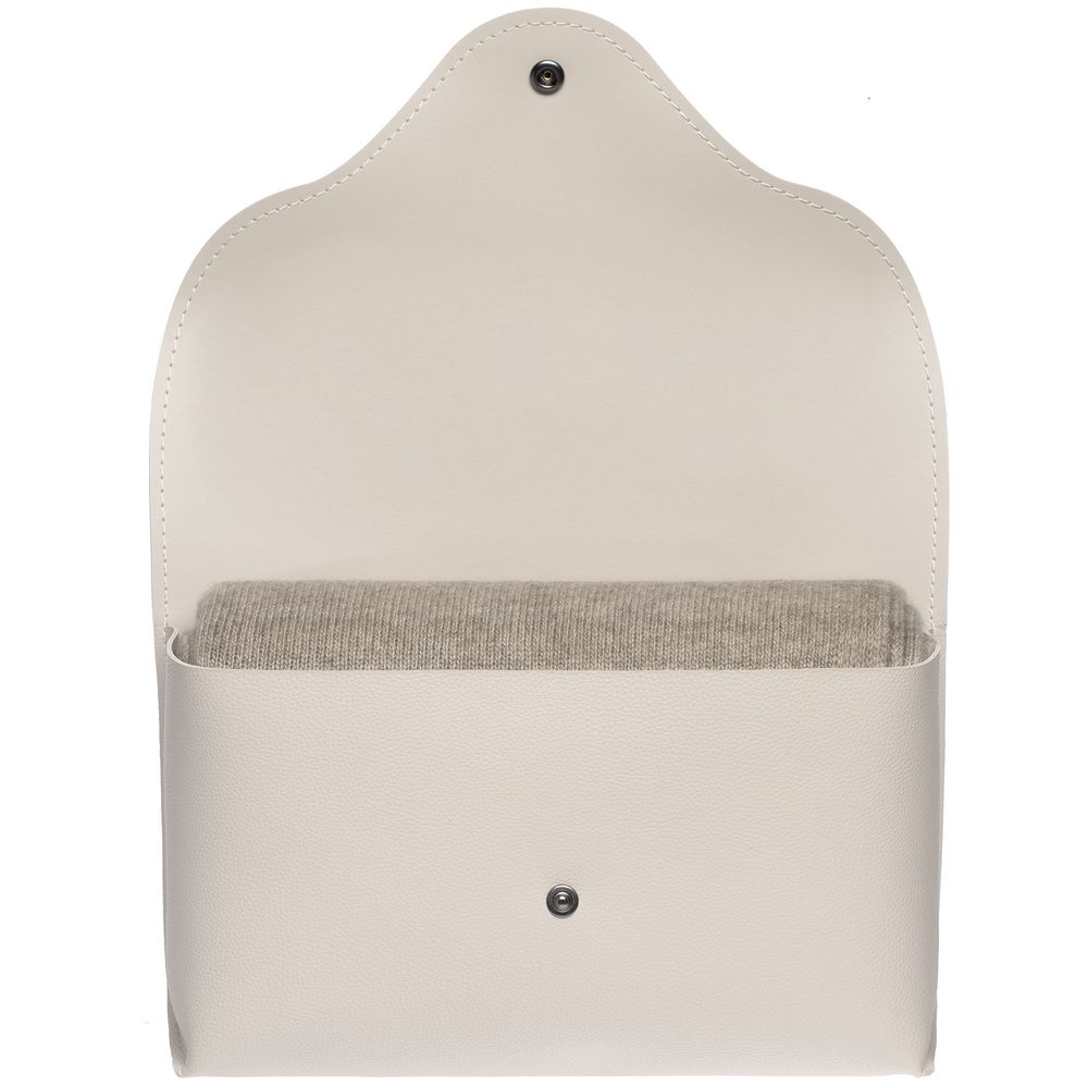 Благодаря кнопке плед можно аккуратно застегнуть посередине, полностью укутавшись в его теплые объятия. Элегантная упаковка-клатч добавляет пледу особого шарма — получается изысканный элитный деловой подарок.