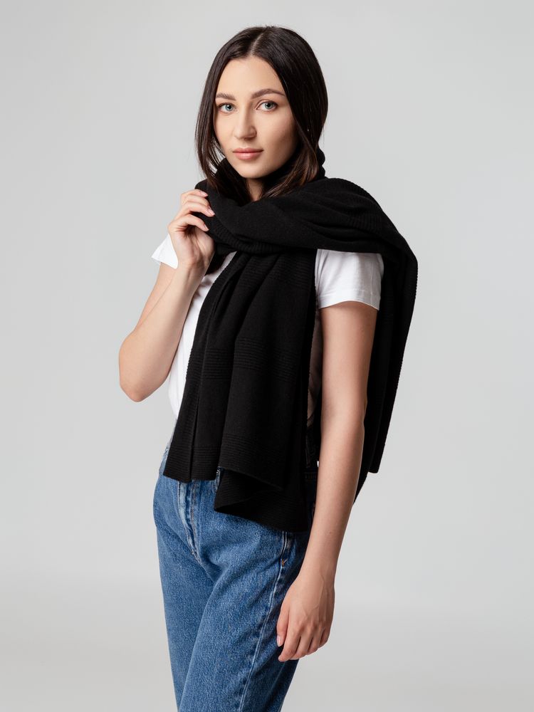 Палантин Territ мелкой фактурной вязки выполнен с вниманием к мельчайшим деталям: это настоящая неброская роскошь.