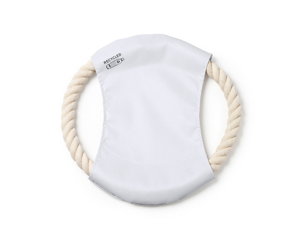 Фрисби для домашних животных с центральной вставкой из RPET и хлопчатобумажной веревкой. Термотрансфер (1 цвет (цветные изделия)) на данный товар осуществляется бесплатно. Оплачивается только настройка оборудования в размере 10000 рублей на весь тираж.