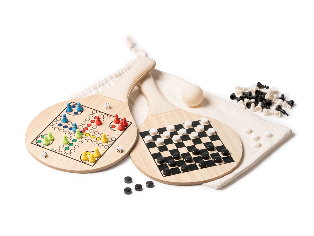 Набор пляжных ракеток из дерева и пшеничного волокна. Включает игры: шахматы и парчиси. Гравировка (CO2 лазер) (Без чернения) на данный товар осуществляется бесплатно. Оплачивается только настройка оборудования в размере 2700 рублей на весь тираж.