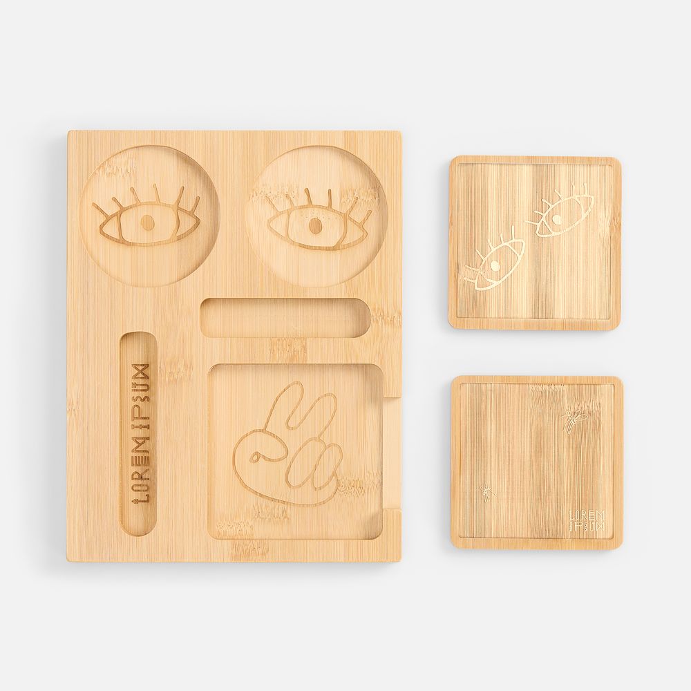 стаканы - стекло; поднос, костеры - бамбук; щипцы - нержавеющая сталь, 304; камень; коробка - картон