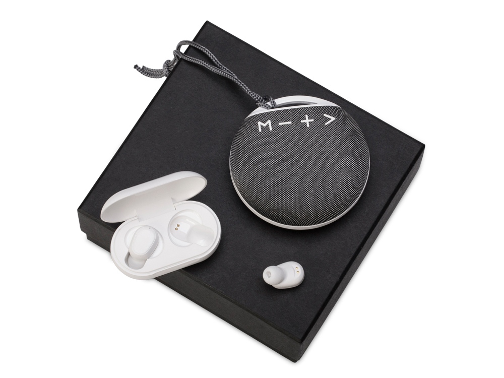 Портативная аудиоколонка обтянута специальной акустической тканью, улучшающей качество звучания. Воспроизведение музыки возможно как с USB носителя, так и с microSD карты; есть режим радио.