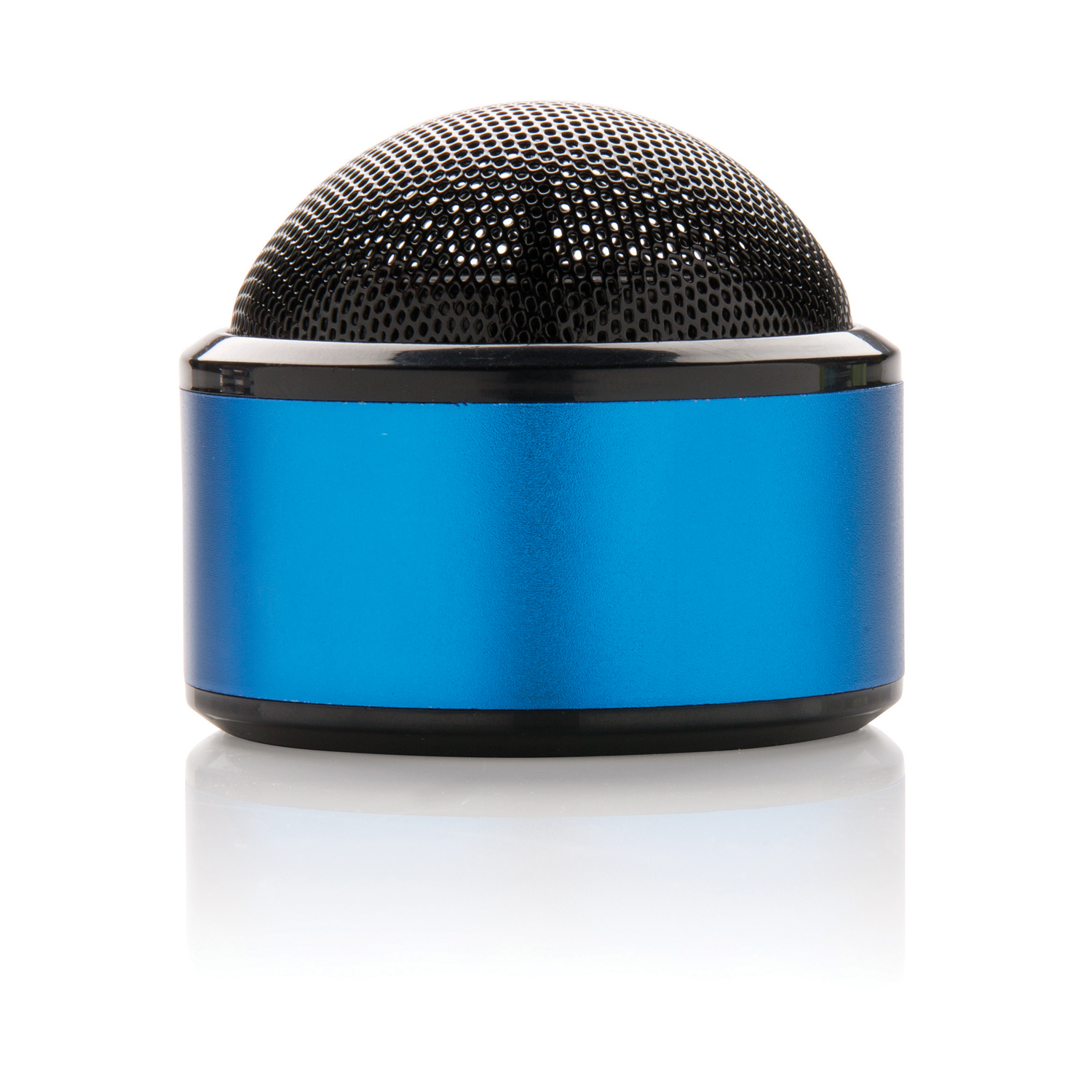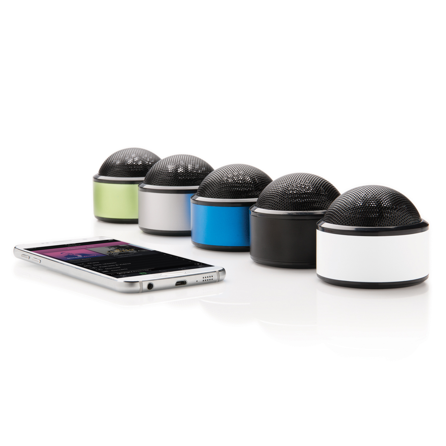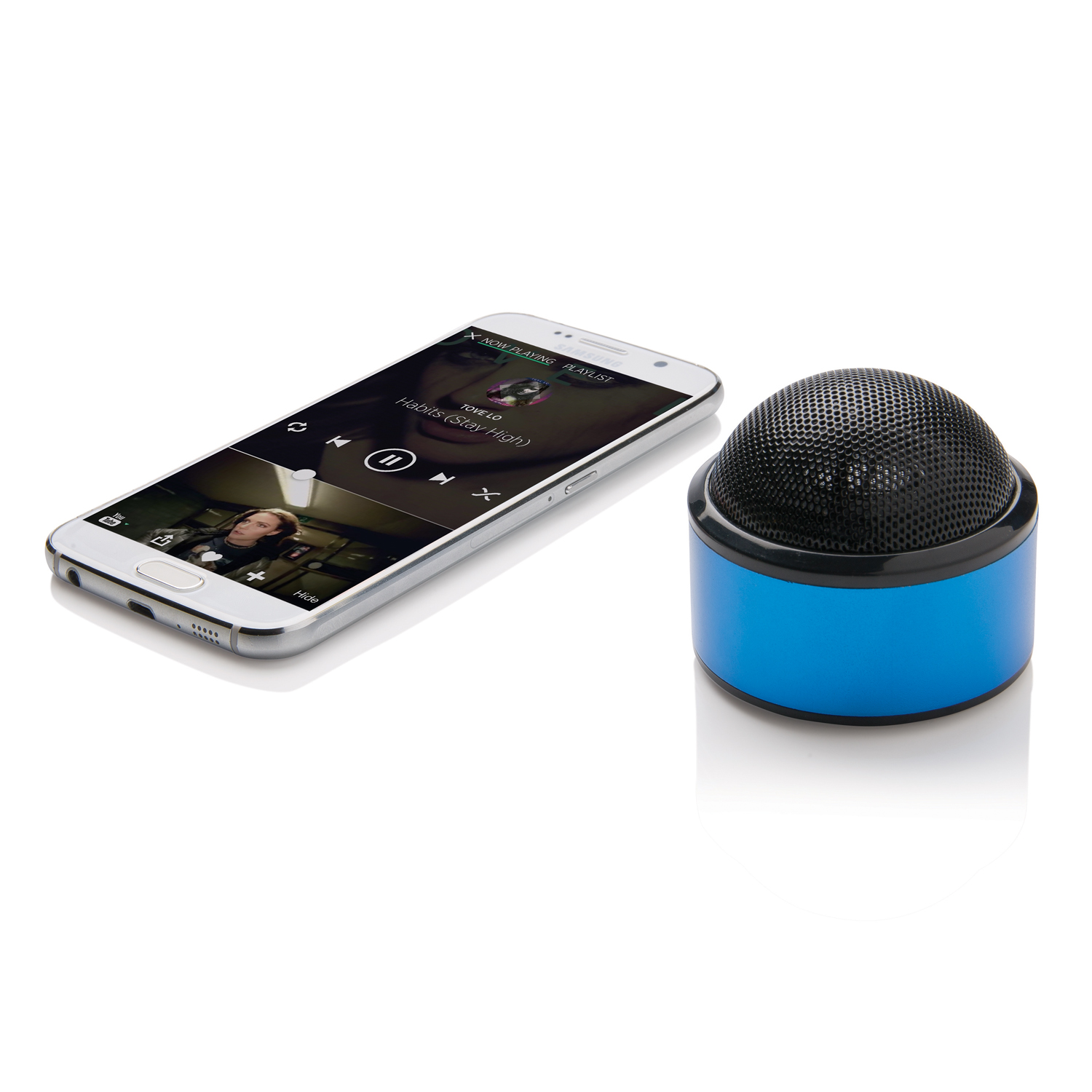 Беспроводная колонка мощностью 3 Вт с аккумулятором емкостью 350 мАч. Продуманный дизайн позволяет звуку распространяться во всех направлениях. Алюминиевый корпус, металлическая решетка, резиновые накладки снизу на корпусе для сцепления с поверхностью и улучшения качества звука. Продолжительность проигрывания – до 3 часов без подзарядки, расстояние от источника сигнала – до 10 м. Поставляется с кабелем для зарядки и аудиокабелем для подключения к телефону. Подходит для всех мобильных телефонов.
