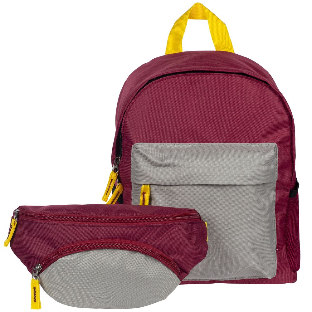 Поясная сумка детская Kiddo, бордовая с серым