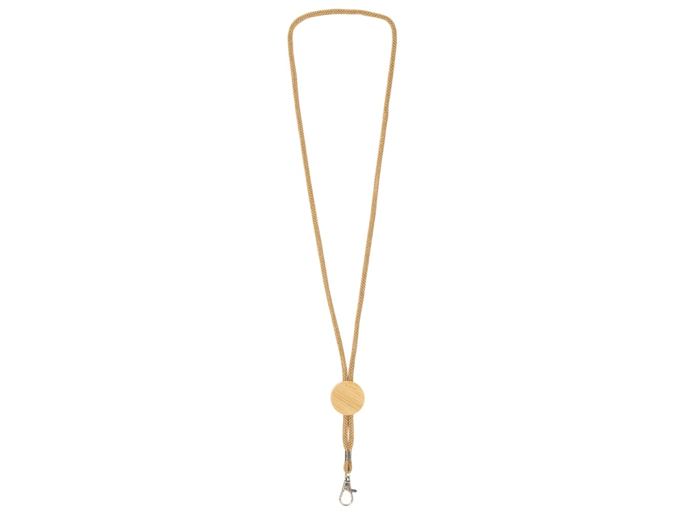 Шнурок изготовлен из переработанной бумаги и дополнен бамбуковой плашкой, на которую можно нанести логотип.