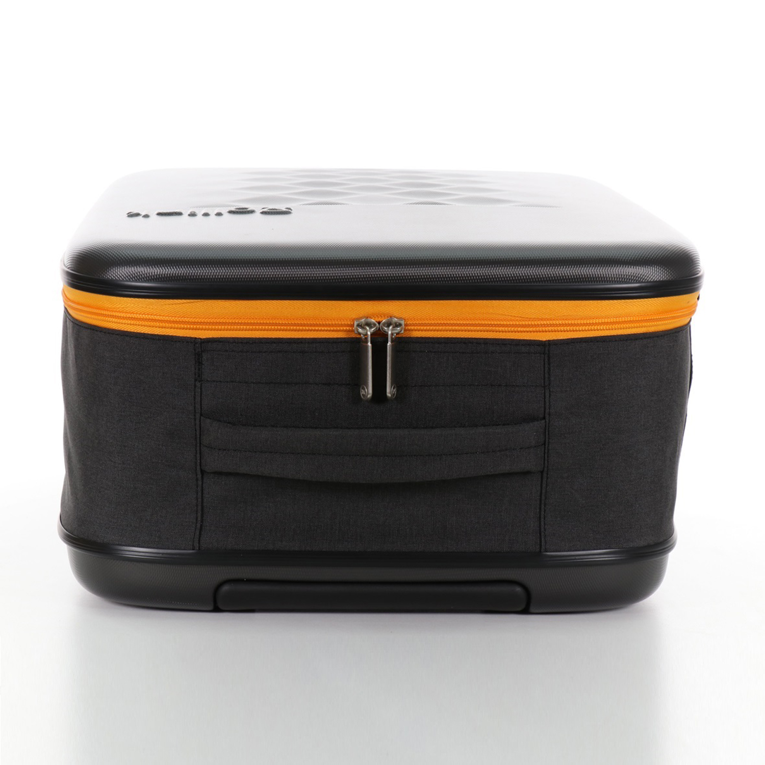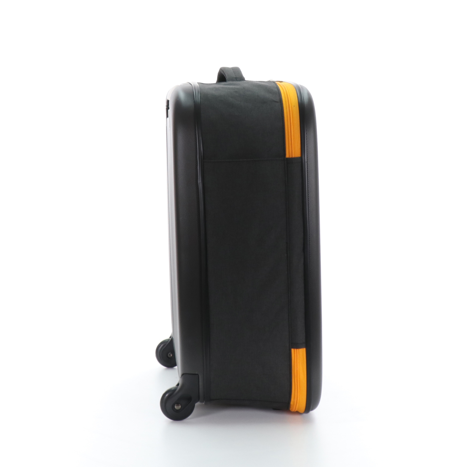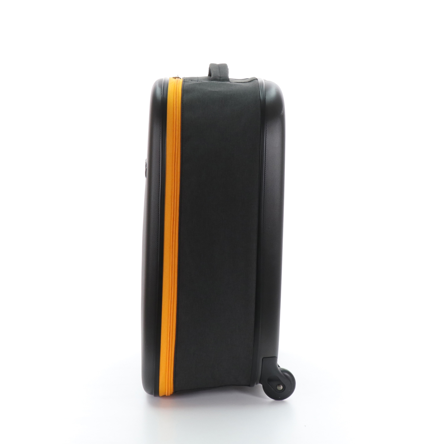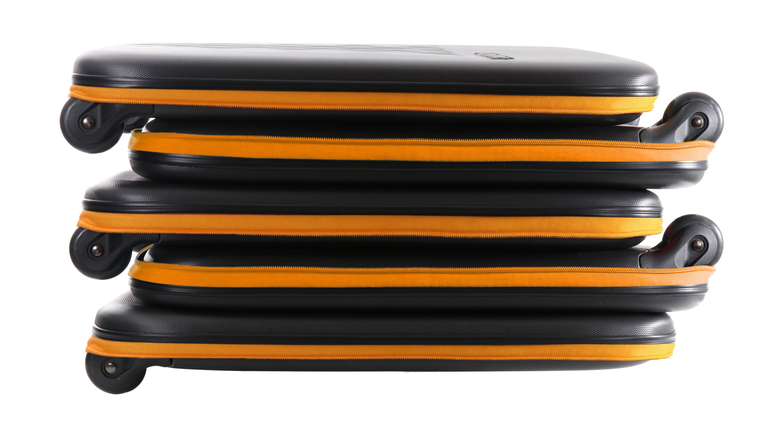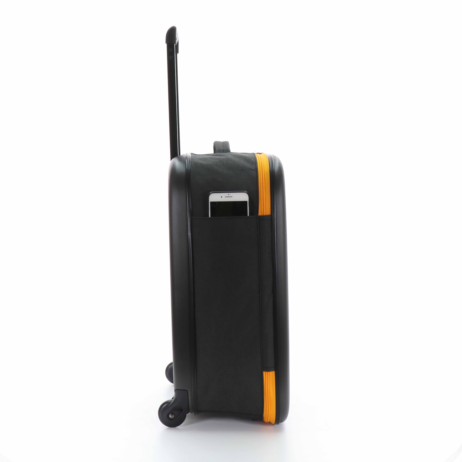 Складной легкий чемодан Rollink Earth черного цвета с оранжевой молнией. Размер 55х40х20 см. В сложенном виде толщина составляет 5 см, с колёсами 8,5 см. Объем 40 л. Вес 2,2 кг. Жесткие стенки сделаны из ударопрочного полипропилена. Бока мягкие, из полиэстера с водоотталкивающей пропиткой. Внутри два откидывающихся жестких клапана на дне и вверху чемодана, крепятся липучками и сохраняют форму чемодана в собранном виде. Боковой easy access карман 12х19 см на липучке для документов и телефона. Удлиненная надежная выдвижная телескопическая ручка из алюминия с несколькими уровнями фиксации высоты ручки (от пола 80/94/104 см) для людей разного роста и удобная мягкая ручка сверху чемодана, чтобы было удобно нести его в руках. 2 колеса со специальным покрытием и подшипниками для более плавного и бесшумного передвижения. Надежная молния оранжевого цвета.