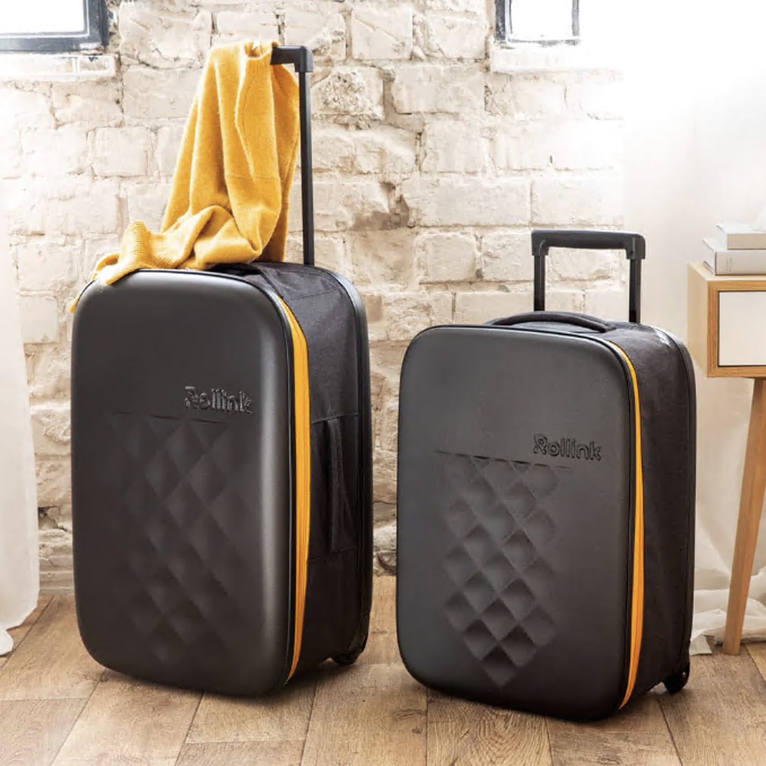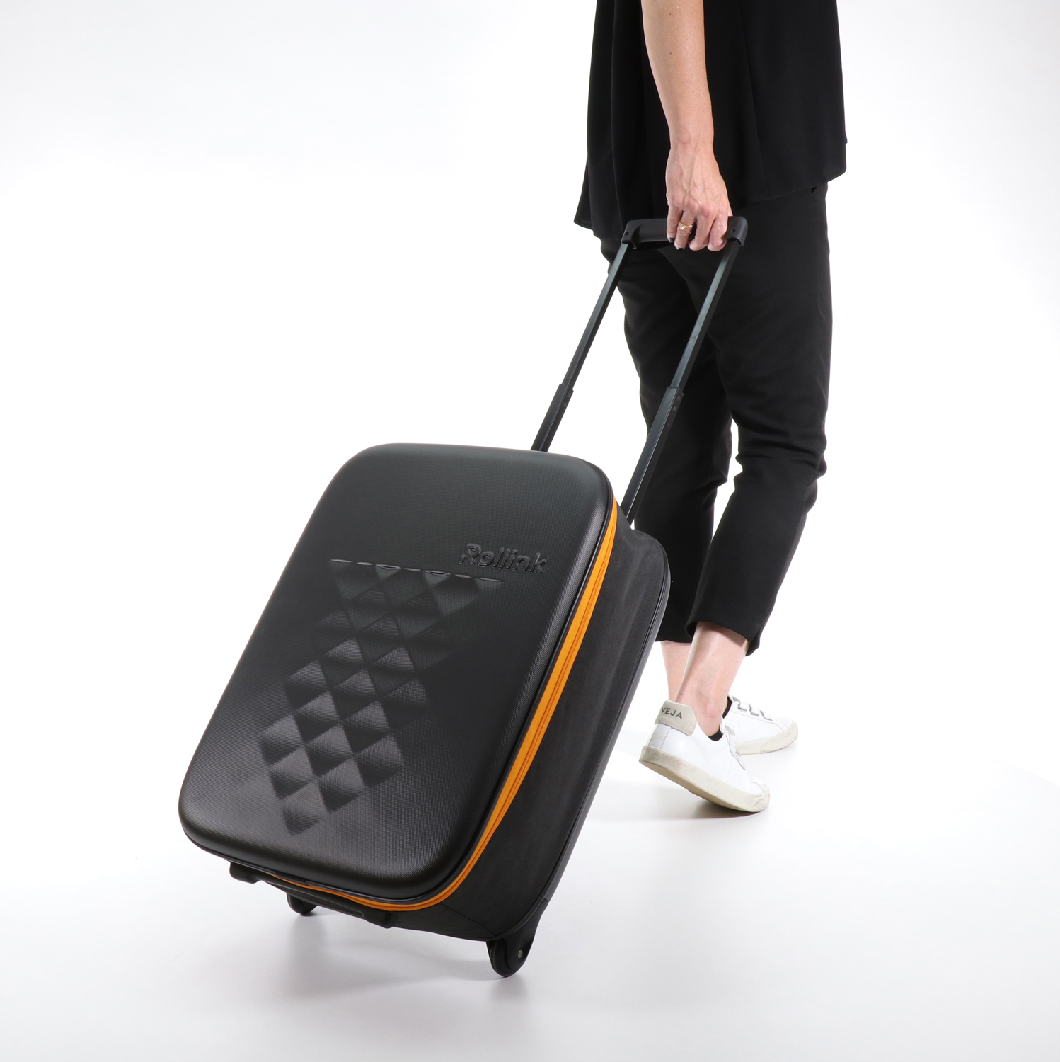 Чемодан складной Rollink Earth 55x40x20 см, 2 колеса, черный/оранжевый