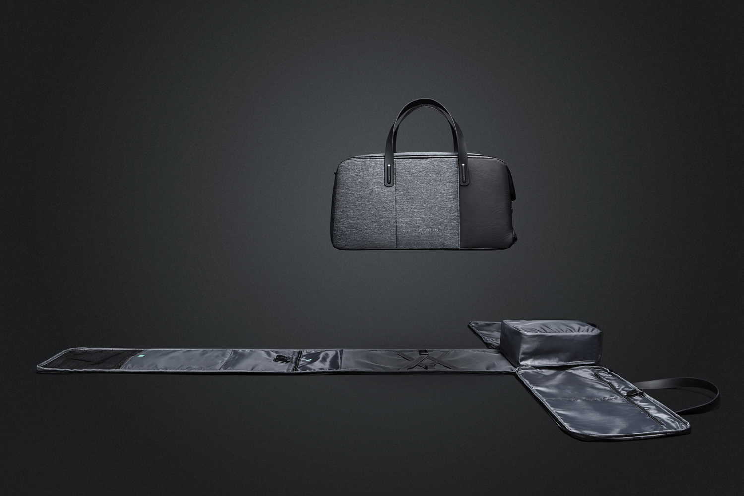 Дорожная сумка-трансформер FlexPack Go со съемным плечевым ремнем и прочными резиновыми ручками, обладатель премий Governor Cup Industrial Design Excellence Award, Upstyle Award 2018. Сделана из прочного устойчивого к порезам и трению водоотталкивающего многослойного полиэстера, не требующего специального ухода. Сумка упакована в черную подарочную коробку размером 35х25х11 см.