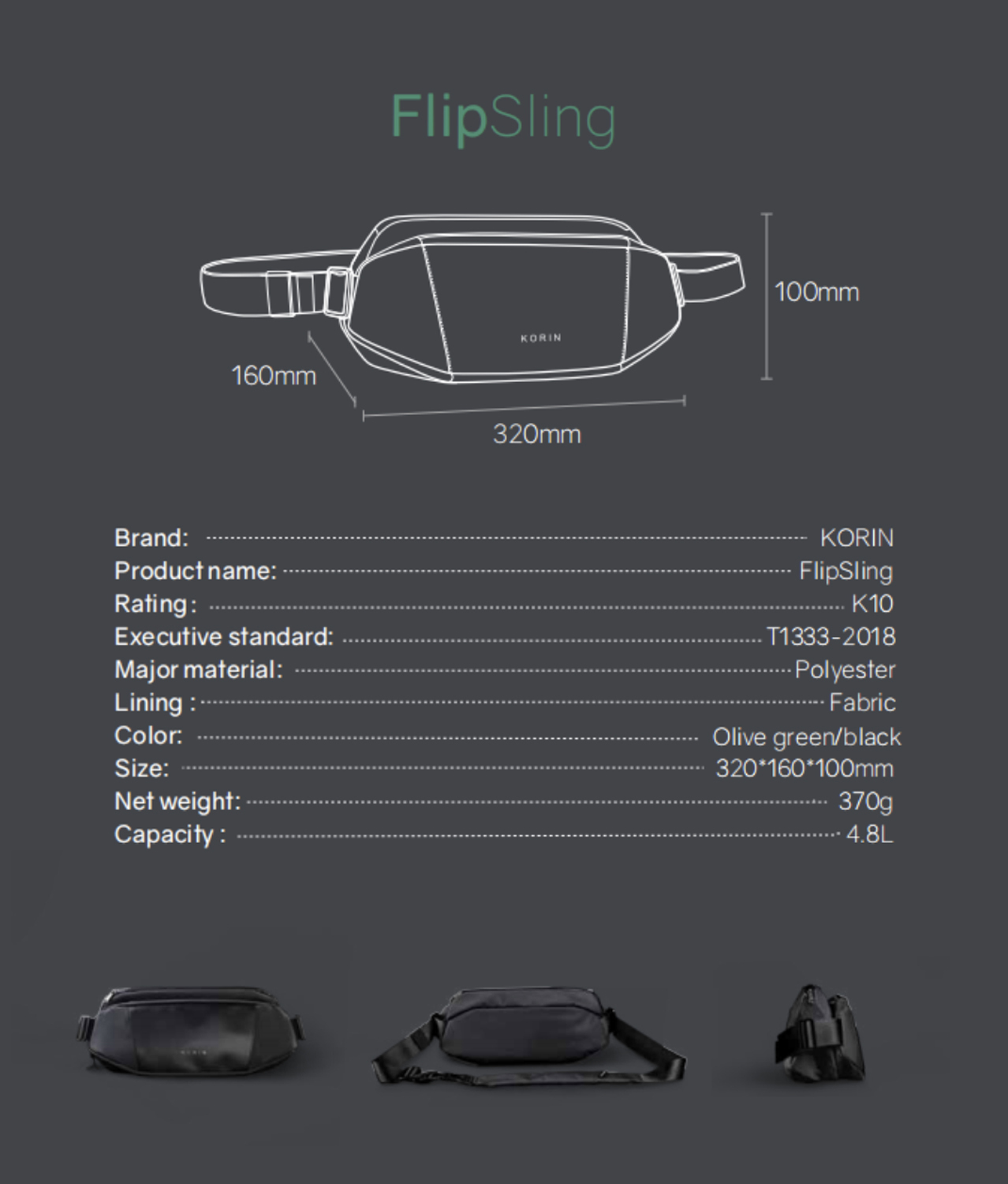 Наплечная сумка KORIN FlipSling 32х16х10 см, черная