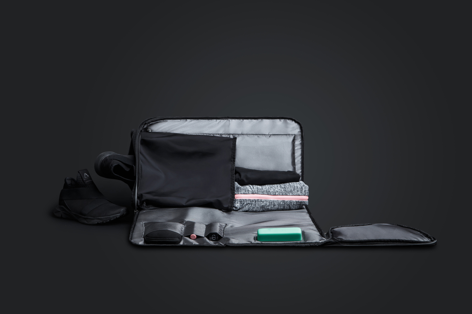 • Водонепроницаемое вентилируемое отделение для обуви, мокрого полотенца, купальника, душевых принадлежностей.