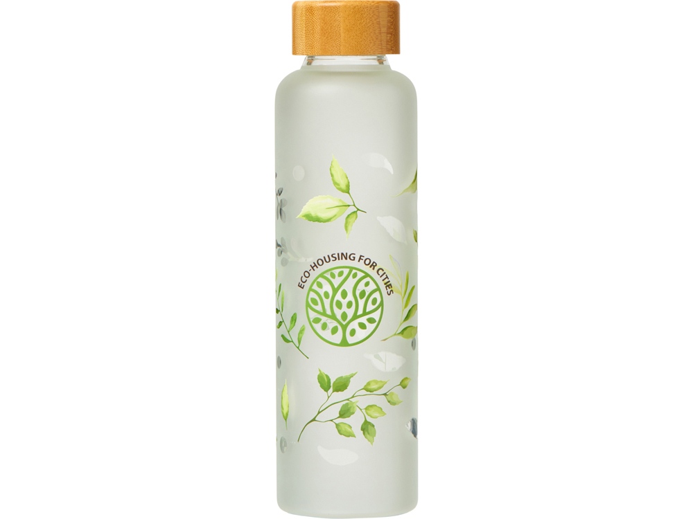 Стеклянная бутылка с бамбуковой крышкой Foggy, 600 мл (дизайн с листьями)