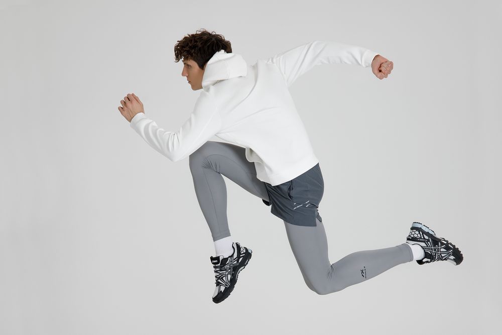 Такой «сэндвич» хорошо держит форму (а еще приятно пружинит под пальцами), но при этом остается легким и эластичным, не сковывает движений и отводит лишнюю влагу. Внутренняя ячеистая структура улучшает циркуляцию воздуха, позволяя коже дышать, — а значит, можно не бояться «эффекта парника» во время тренировки или активной прогулки.