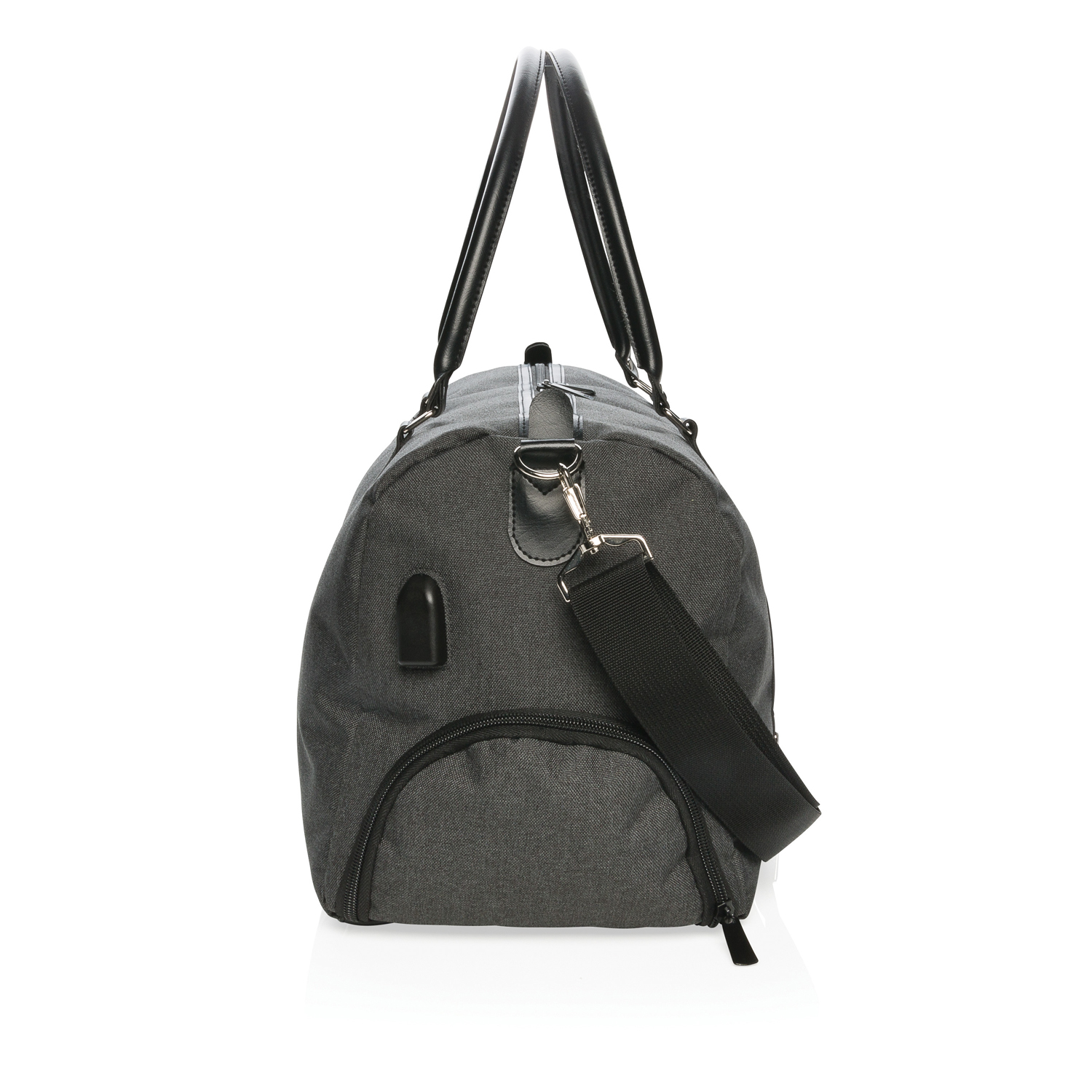 Сумка со встроенным USB - портом выполнена в лаконичном минималистическом дизайне из полиэстера 600D. Ручки и стильные элементы на сумке изготовлены из полиуретана, также на сумке предусмотрен удобный плечевой ремень. Во вместительном основном отделении найдется место для всего, что может пригодиться в поездке или на спортивной тренировке. Подключите телефон к интегрированному USB-порту на боковой части сумки, и вы сможете заряжать свои мобильные устройства на ходу. Небольшой наружный карман отлично подойдет для всех важных мелочей, которые всегда должны быть под рукой. Не содержит ПВХ.