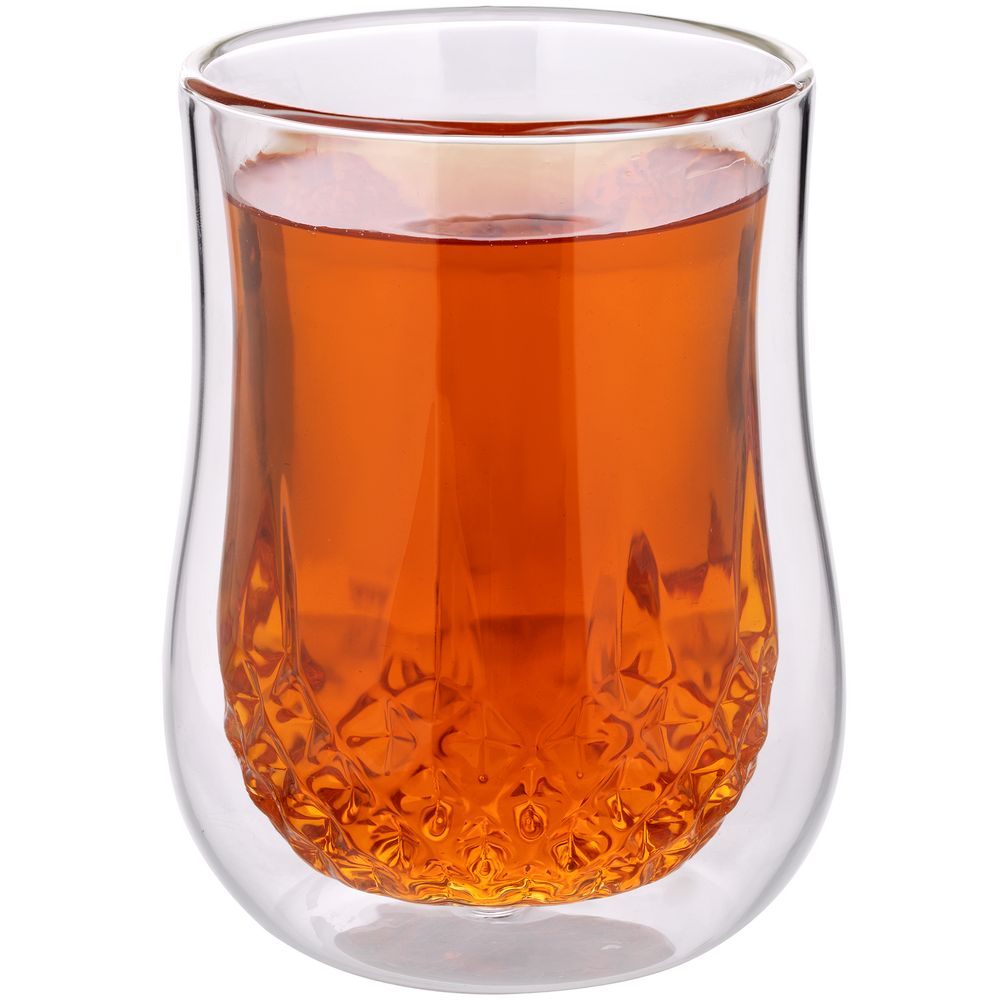 Стакан с двойными стенками Double Wall отличается оригинальным дизайном: как будто резной хрусталь спрятали в кокон из тончайшего боросиликатного стекла. Подходит для подачи десертов, горячих и холодных напитков.Емкость 250 мл.
