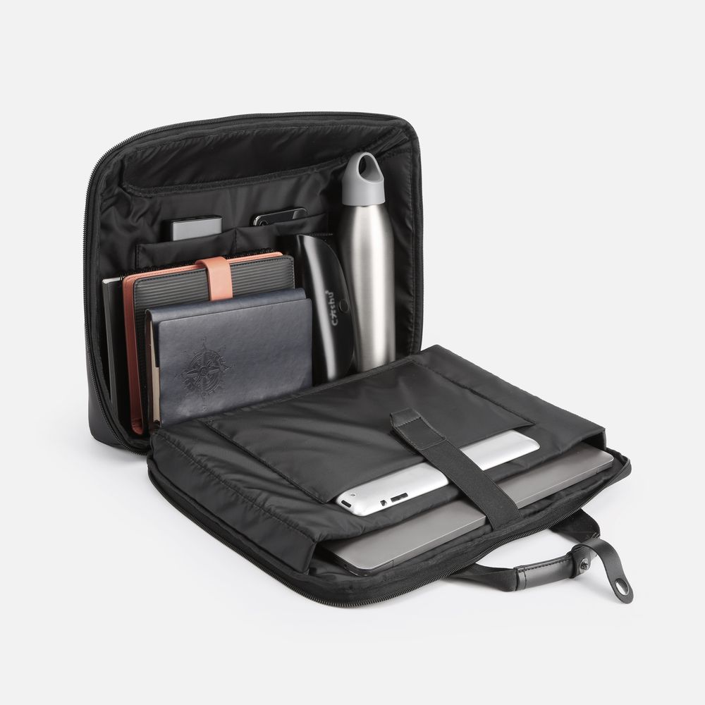 Раскрытие сумки на 180° обеспечивает максимальный комфорт в использовании: от повседневного ношения ноутбука до прохождения контрольных пунктов при досмотре. В аэропортах, на вокзалах или в других местах с контролем безопасности вы легко продемонстрируете содержимое сумки, не вынимая каждый предмет по отдельности.