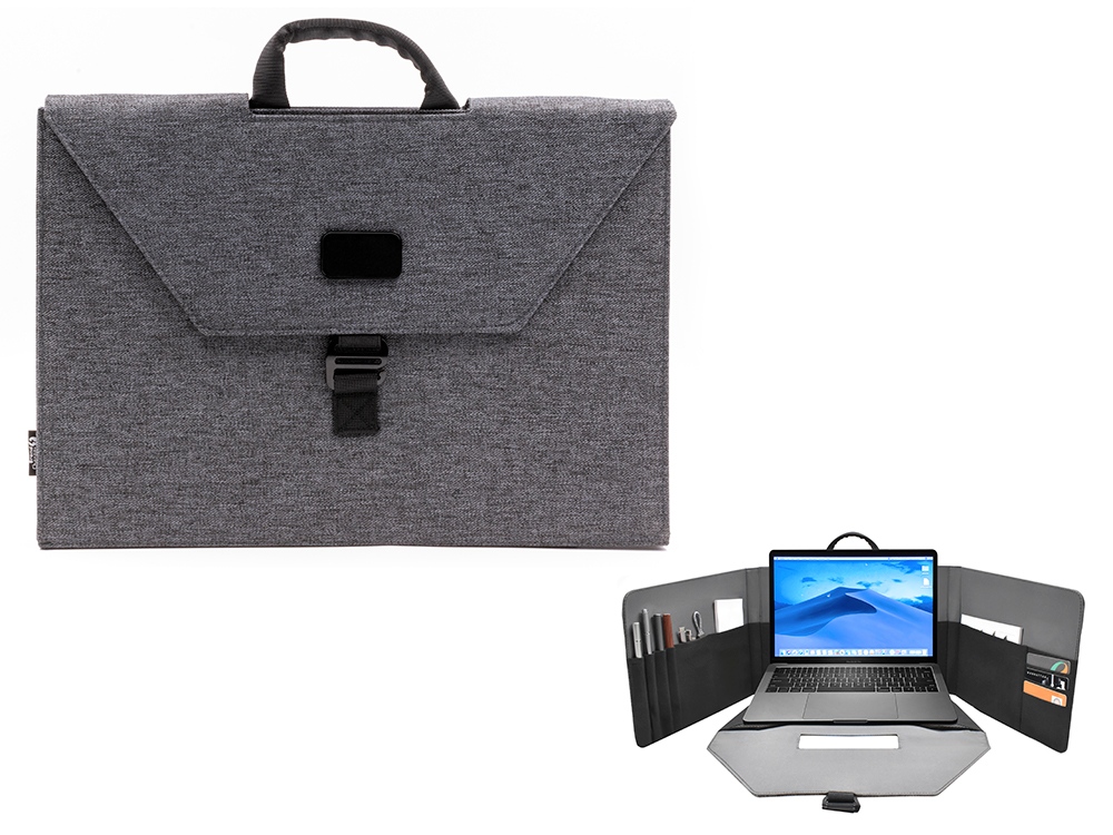 Легкая и функциональная сумка для ноутбука15'' или планшета, которая быстро трансформируется в комфортабельное переносное рабочее место. Степень наклона ноутбука при работе регулируется липучкой. Внутри предусмотрен органайзер для канцтоваров, смартфона, бумажника и карточек. Застежка надежно фиксирует сумку на закрытом виде. Вы сможете работать в любом месте и любой обстановке. Термотрансфер (1 цвет (цветные изделия)) на данный товар осуществляется бесплатно. Оплачивается только настройка оборудования в размере 10000 рублей на весь тираж.