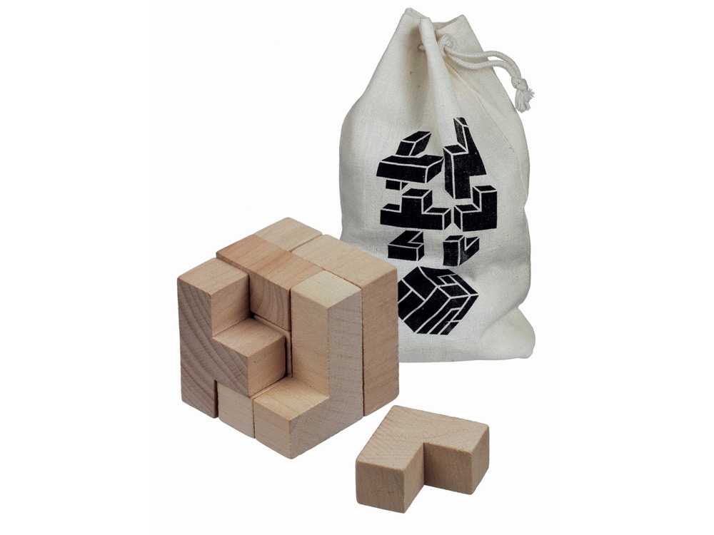 Головоломка Solfee. Деревянная квадратная головоломка в хлопковом мешочке 10 х 18 см. Головоломка состоит из 7-ми частей. Дерево. Гравировка (CO2 лазер) (Без чернения) на данный товар осуществляется бесплатно. Оплачивается только настройка оборудования в размере 2700 рублей на весь тираж.