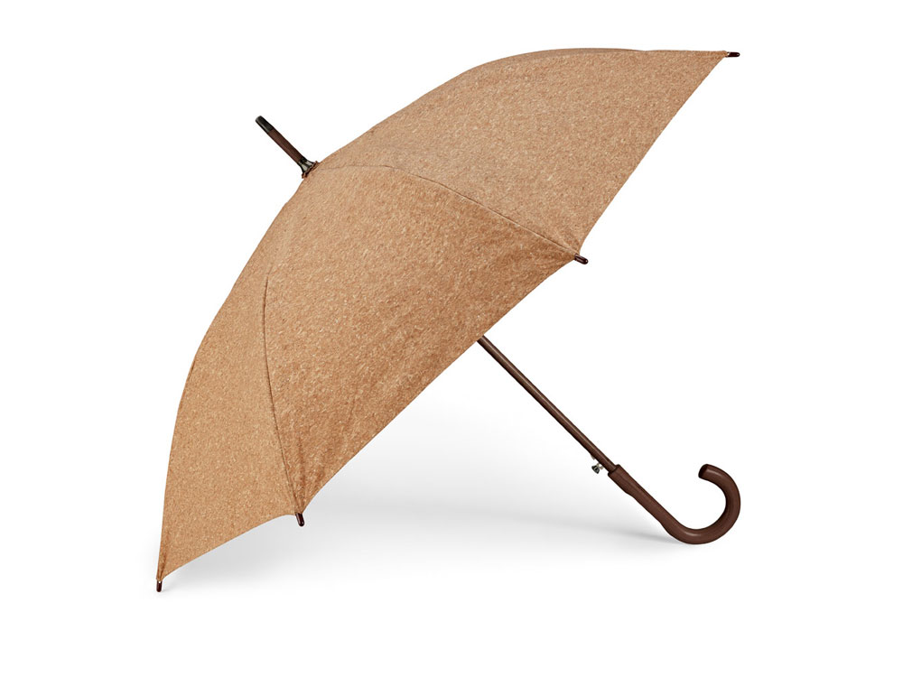 Полуавтоматический зонт-трость из натуральной пробки с деревянной ручкой. Термотрансфер (1 цвет (цветные изделия)) на данный товар осуществляется бесплатно. Оплачивается только настройка оборудования в размере 10000 рублей на весь тираж.