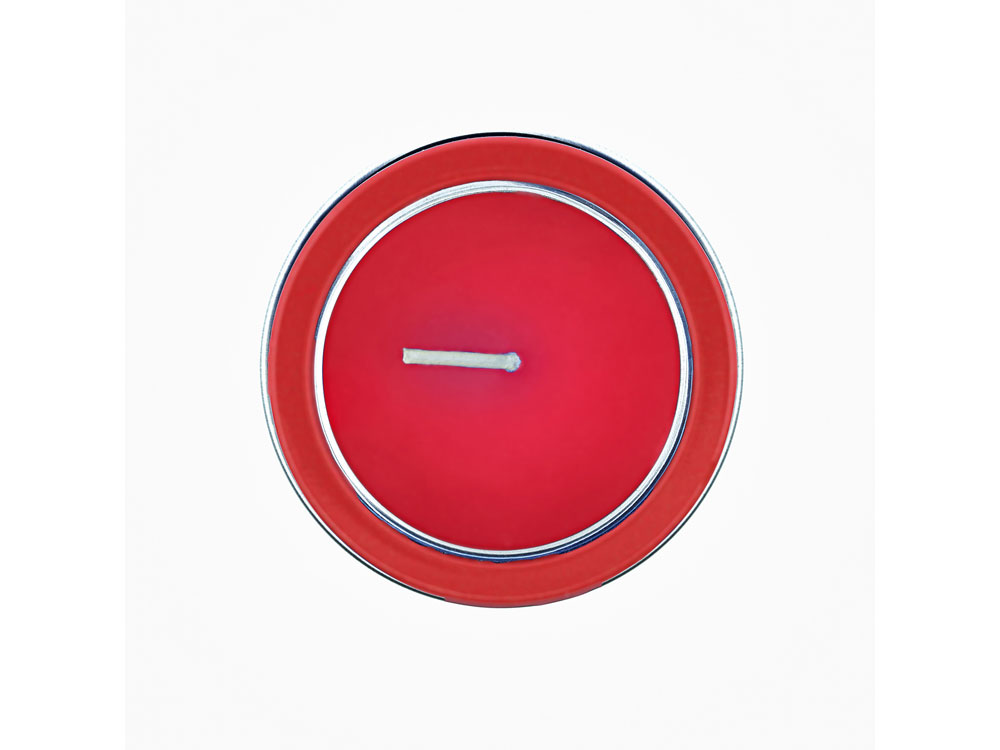 Ароматическая свеча с запахом ванили в металлическом круглом подсвечнике с крышкой с прозрачным окошком. Цвет свечи в тон подсвечника. белый фитиль