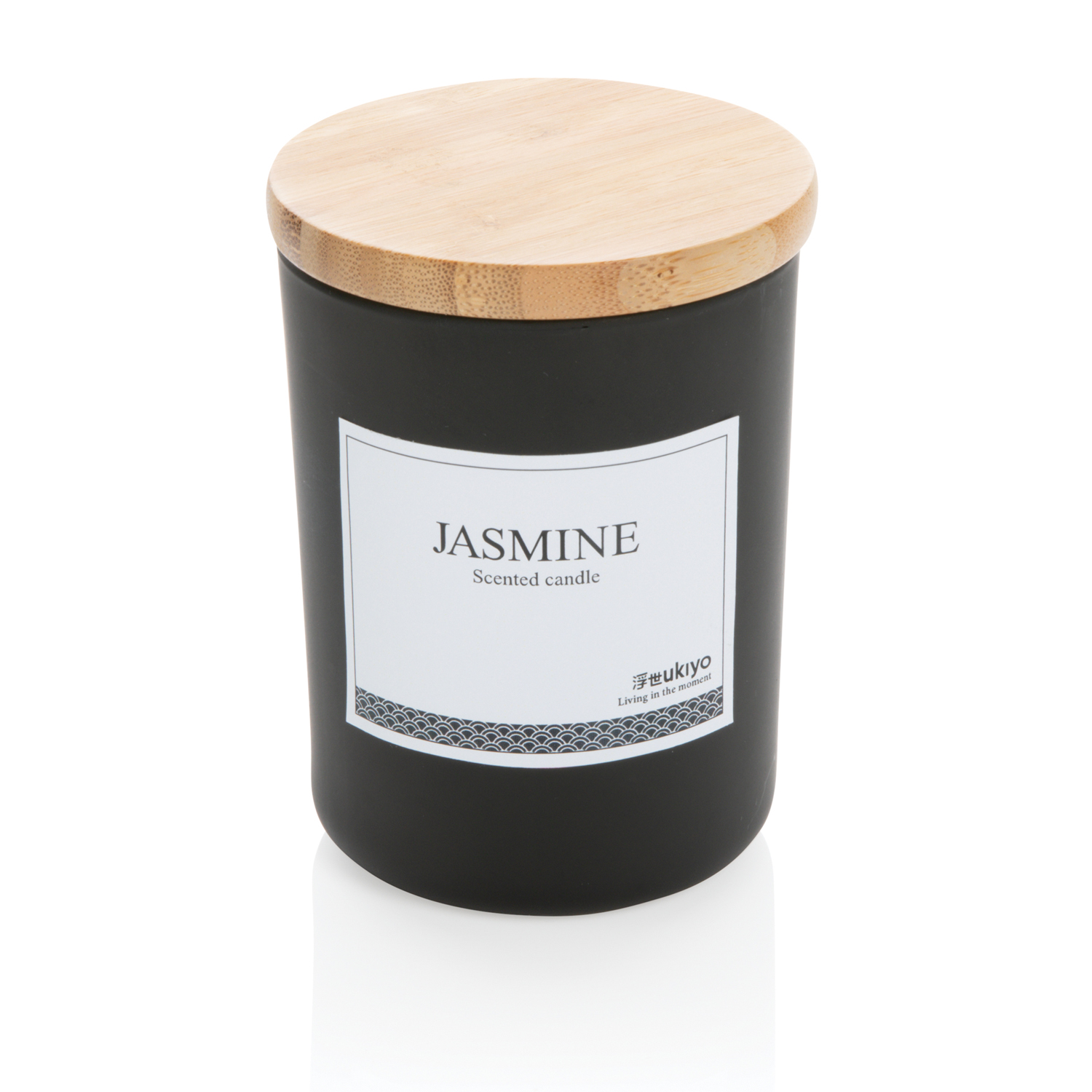 Создайте в доме уютную атмосферу с помощью ароматической свечи Ukiyo. Тонкий запах жасмина для особого настроения. Ароматическая свеча поставляется в стеклянном стакане с бамбуковой крышкой. Изготовлена из воска с 3% ароматической эссенцией (без продуктов животного происхождения). Время горения 30 часов.
