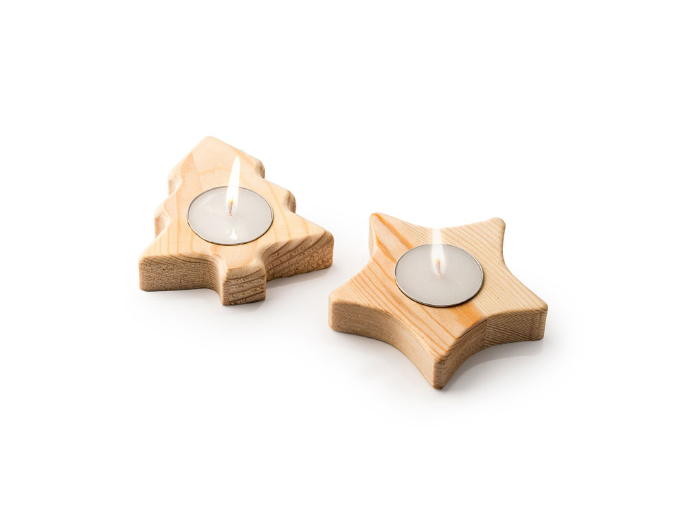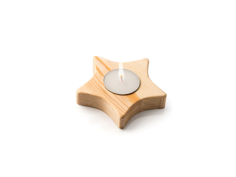Свеча на деревянной подставке в форме звезды.