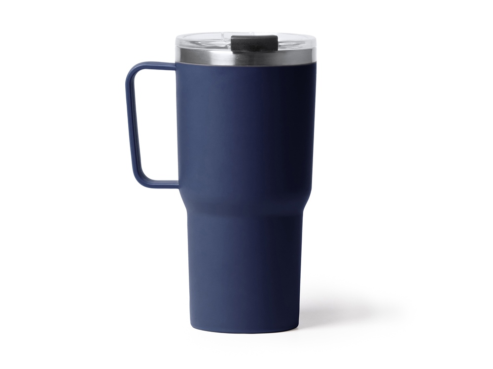 Термокружка из нержавеющей стали 304 (внутри) и полипропилена. В комплекте крышка с клапаном. Объём: 500 мл. Поставляется в дизайнерской коробке. Тампопечать (1 цвет (цветные изделия)) на данный товар осуществляется бесплатно. Оплачивается только настройка оборудования в размере 4500 рублей на весь тираж.