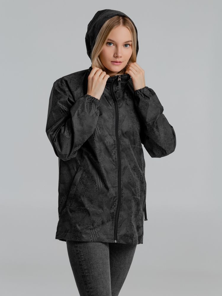Ветровка с капюшоном из ткани с водоотталкивающей пропиткой и светоотражающим рисунком.