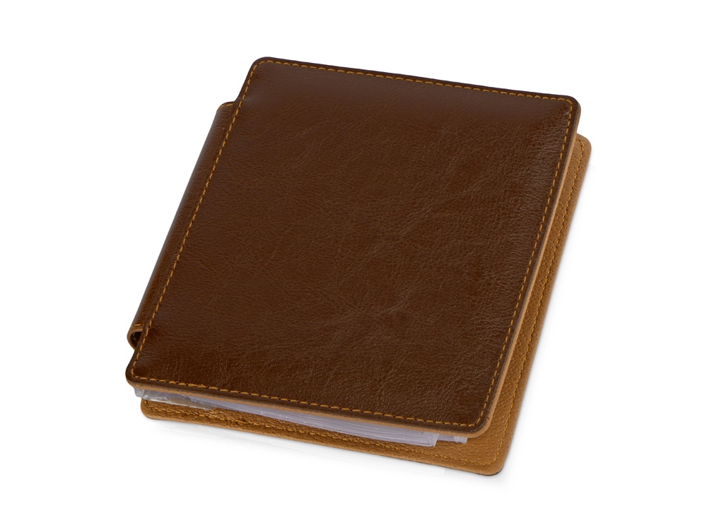 Компактная, удобная визитница из натуральной кожи рассчитана на одновременное хранение не более 36 карточек. В комплекте к визитнице прилагается набор разноцветных стикеров. Превосходный подарок для активных деловых людей. Тиснение (Блинт) на данный товар осуществляется бесплатно. Оплачивается только настройка оборудования в размере 8700 рублей на весь тираж.