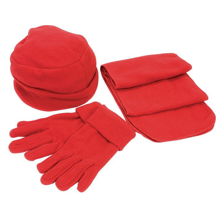 Флисовый набор "Метель" шапка, шарф, перчатки, красный, флис, 190 гр/м4