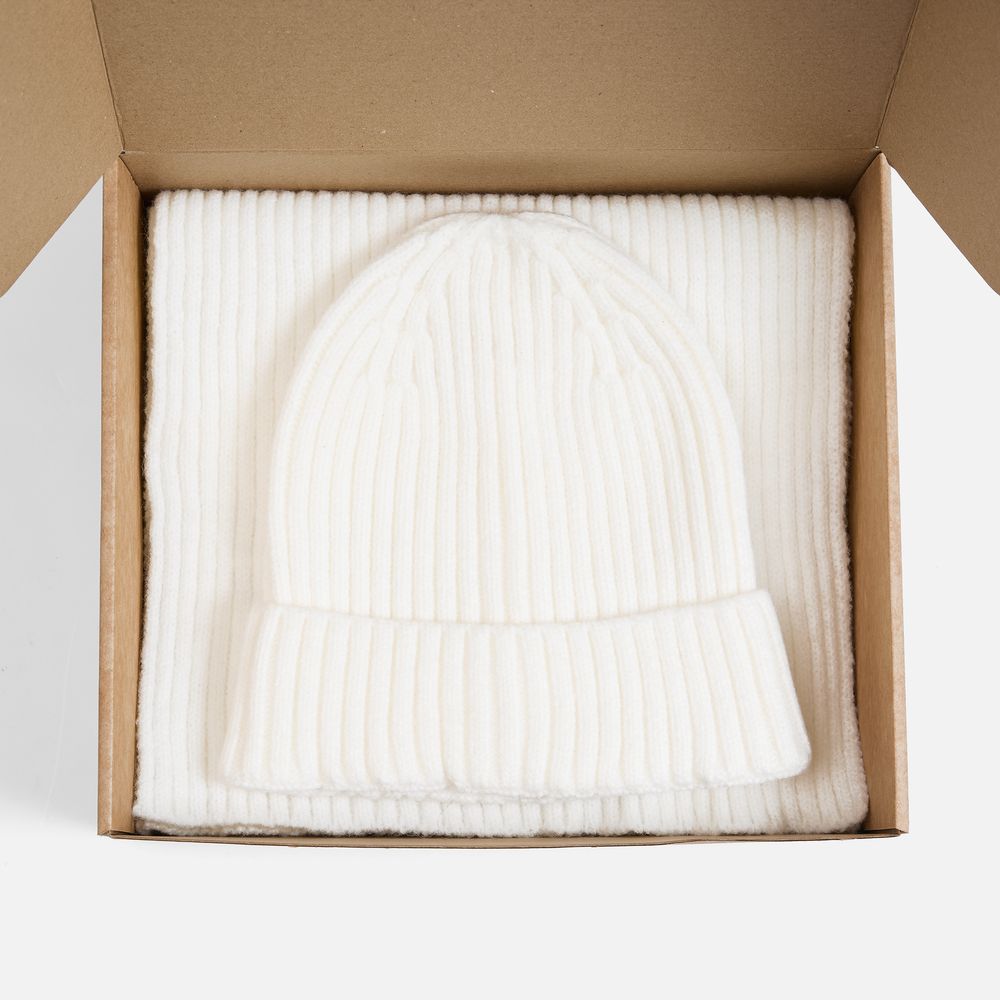 Шапку можно носить двумя способами: плотно прилегающей к голове или слегка приподнятой на макушке для создания современного силуэта. Шарф оптимальной длины и ширины позволяет экспериментировать с вариантами драпировки. Набор станет идеальным спутником для городских прогулок и поможет создать элегантный образ без лишних деталей.