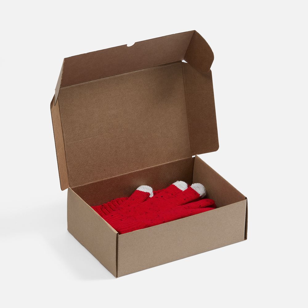 шапка - акрил 94%; полиэстер 6%; перчатки - акрил 91%; полиэстер 6%; металлическое волокно 3%; коробка - микрогофрокартон