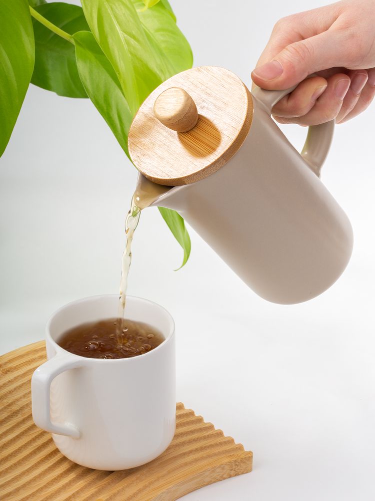 Френч-пресс Keramikk выполнен из керамики, благодаря чему он хорошо сохраняет температуру напитка, не обжигает руки и прост в уходе. Контраст бамбуковой крышки и керамики выглядит действительно интересно и необычно.Емкость 350 мл.