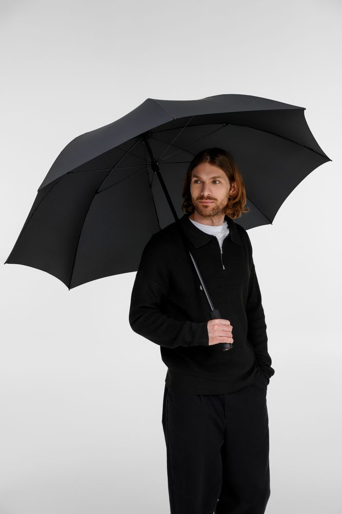 Сверхлегкий, сверхпрочный и со сверхбольшим куполом! Зонт весит всего 255 г, а под его куполом диаметром 130 см легко укрыться от непогоды вдвоем. Каркас из алюминия и карбона выдерживает скорость ветра до 120 км/ч без повреждений.